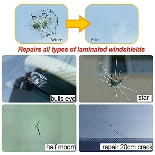 Cracked Glass Repair Kit is designed to repair glass damages including bulls-eye, cracks, spider web, star damages, and some combination breaks only in 20 minutes.